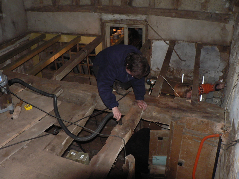 We hebben een woonkamer, keuken, twee slaapkamers, badkamer, tuin, zolder met tent, stal met podium, werkplaats.