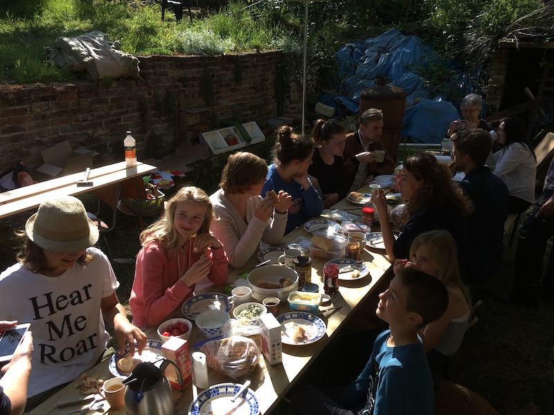 Samen de schouders er onder, samen genieten van lekker eten, samen een goed gesprek hebben en samen naar het houtvuur staren.