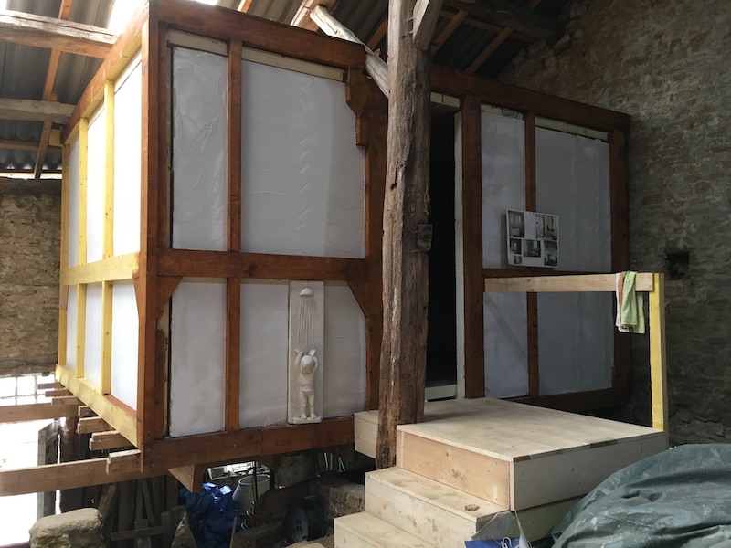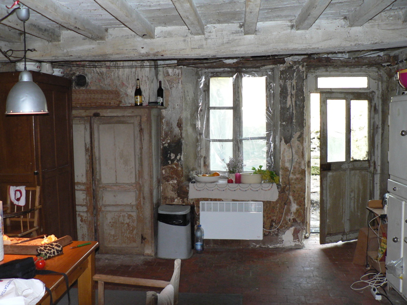 We hebben een woonkamer, keuken, twee slaapkamers, badkamer, tuin, zolder met tent, stal met podium, werkplaats.